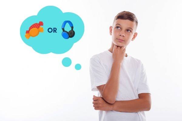 Sweets, magazines, and other instant gratifiers may not seem so appealing if they recognise, they may miss out on other things. And it may make them think twice about blowing it in one go – therefore encouraging them to save and think about the true value of things.